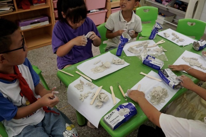 吳德灝平時(shí)的教學(xué)面對的是大學(xué)生,這是他第一次教這么小的孩子。孩子們顯然還無法理解什么是雕塑,他果斷放棄了這個(gè)概念,站在孩子的角度,告訴他們這是在捏泥公仔。