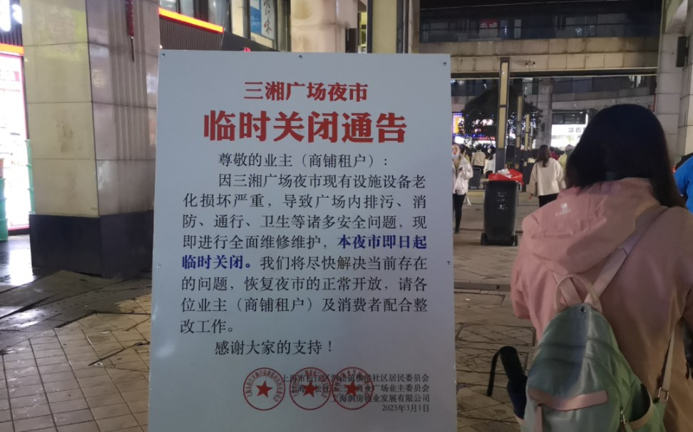今年3月,三湘廣場(chǎng)發(fā)布臨時(shí)關(guān)閉公告:由于廣場(chǎng)內(nèi)設(shè)施設(shè)備老化損壞嚴(yán)重,存在排污、消防、通行、衛(wèi)生等諸多安全問(wèn)題,夜市關(guān)閉進(jìn)行全面維修。