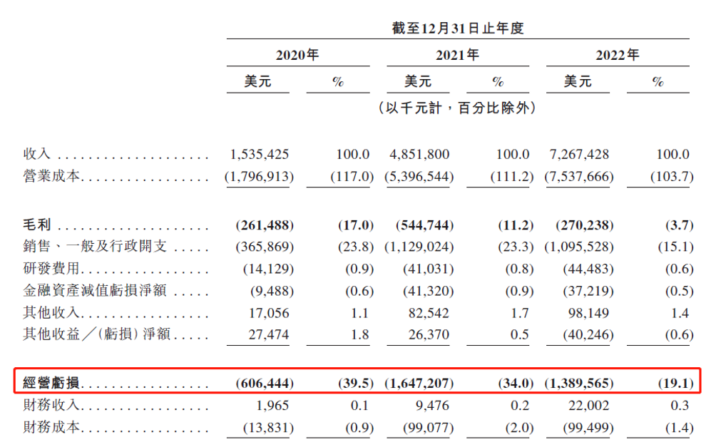 對(duì)于極兔而言,價(jià)格戰(zhàn)無疑也是“殺敵一千,自損八百”的策略,2020年至2022年,極兔在經(jīng)營(yíng)上的虧損分別為6.06億美元、16.47億美元、13.89億美元,累計(jì)虧損則達(dá)到36.42億美元。