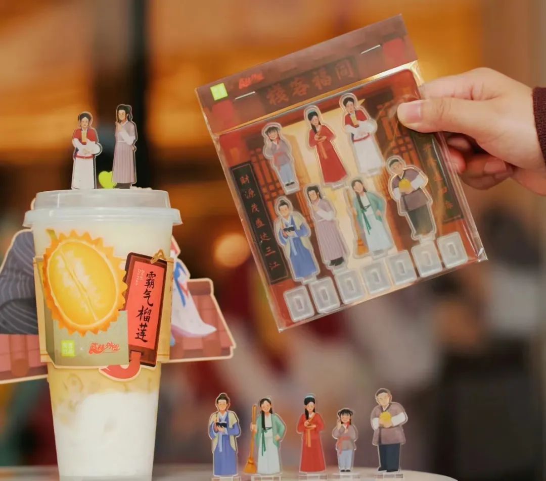 奈雪的茶聯(lián)名《武林外傳》,推出霸氣榴蓮和同?蜅V黝}店,催生一波打卡熱。