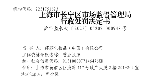 近日,上海市長(zhǎng)寧區(qū)市場(chǎng)監(jiān)督管理局(以下簡(jiǎn)稱(chēng)“長(zhǎng)寧區(qū)市監(jiān)局”)發(fā)布會(huì)行政處罰決定書(shū),莎莎化妝品(中國(guó))有限公司因生產(chǎn)經(jīng)營(yíng)或進(jìn)口未經(jīng)注冊(cè)的特殊化妝品,被罰沒(méi)超90萬(wàn)元。