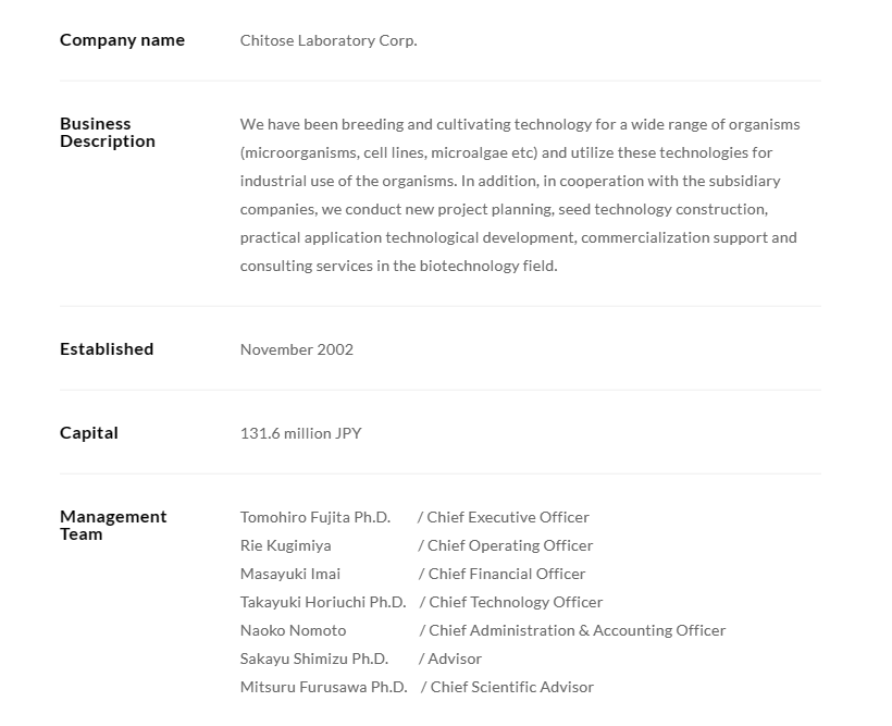 千歲集團(tuán)旗下?lián)碛卸嗉疑锛夹g(shù)創(chuàng)業(yè)公司,其使命是為人類(lèi)長(zhǎng)遠(yuǎn)未來(lái)創(chuàng)造一個(gè)繁榮環(huán)境。集團(tuán)正在通過(guò)“不斷提升經(jīng)濟(jì)合理性以市縣生物技術(shù)領(lǐng)域的技術(shù)開(kāi)發(fā)能力”和“了解生物技術(shù)的本質(zhì)和局限以實(shí)現(xiàn)走向商業(yè)化的業(yè)務(wù)發(fā)展能力”,在農(nóng)業(yè)、醫(yī)療、食品、化學(xué)等領(lǐng)域創(chuàng)造新價(jià)值。集團(tuán)管理層和員工人數(shù)在90人左右。