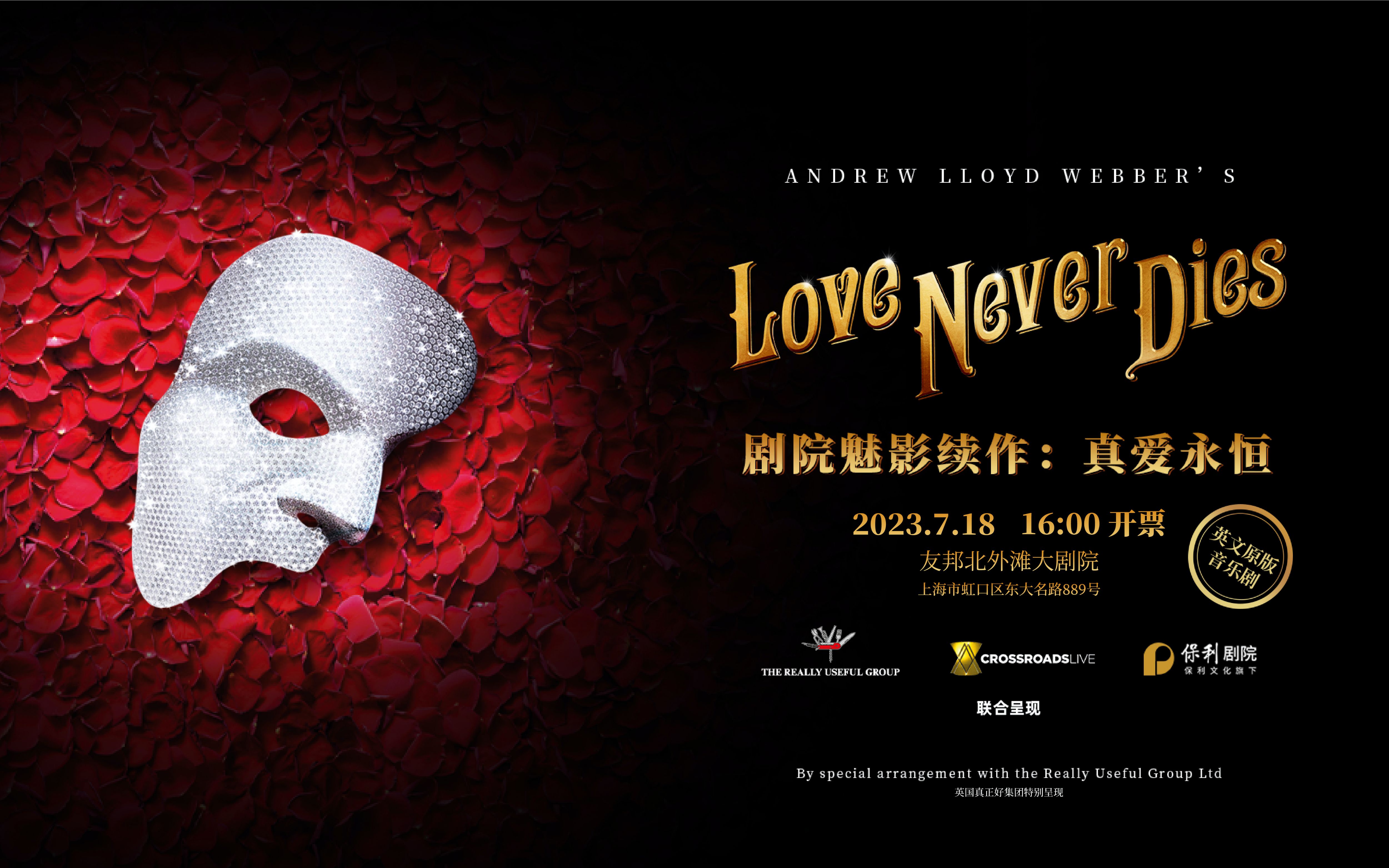 這部由音樂劇大師安德魯·勞埃德·韋伯創(chuàng)作的英文原版音樂劇,于7月18日迎來首輪開票。這是《劇院魅影續(xù)作:真愛永恒》首次來華,將于 2023 年金秋在上海啟航,正式啟動(dòng)全國(guó)巡演之路。