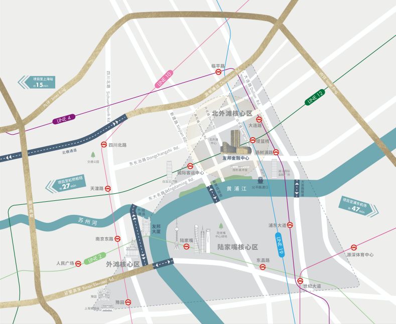 輕松抵達(dá)重要樞紐:5分鐘可抵外灘、8分鐘可抵陸家嘴、15分鐘可抵上海站、27分鐘可抵虹橋樞紐;
