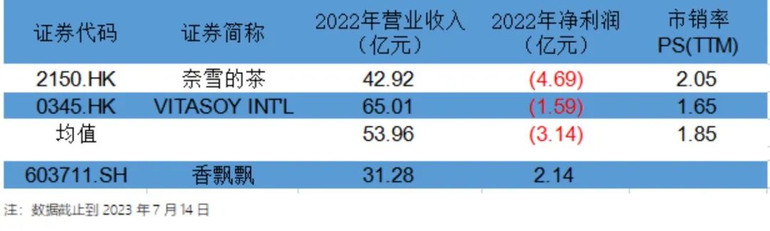 圖:香飄飄即飲業(yè)務估值對比 數(shù)據(jù)來源:wind、36氪整理