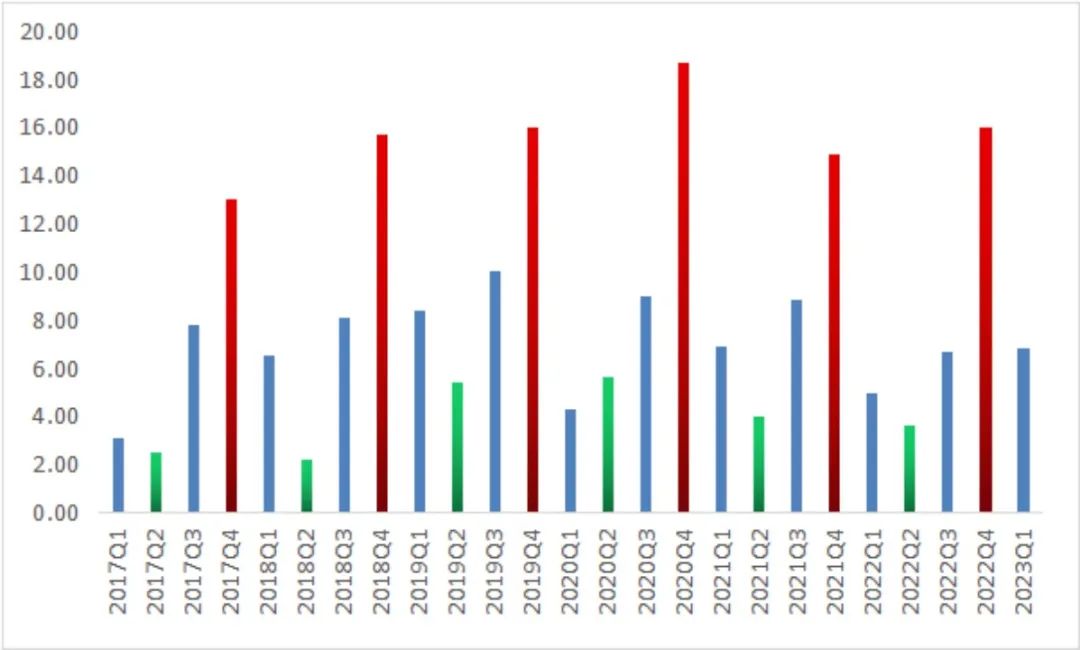 其次,香飄飄的核心傳統(tǒng)沖泡業(yè)務具有非常明顯的季節(jié)性特點,一般的旺季在四季度,淡季在二季度,這就導致其收入呈現(xiàn)出非常大的季節(jié)性波動。而即飲業(yè)務的消費場景大部分在夏季,正好與沖泡形成了互補,因此,即飲業(yè)務如果可以起量,對香飄飄來說不僅意味著收入端的擴張,而且意味著其收入的波動性會被明顯熨平,經(jīng)營的可持續(xù)性和穩(wěn)定性都會得到大幅改善,有利于其抗風險能力的提升,從本質上說可能還會徹底改變香飄飄的估值邏輯。