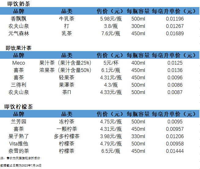 圖:香飄飄即飲產(chǎn)品同業(yè)對比 數(shù)據(jù)來源:天貓旗艦店、36氪整理