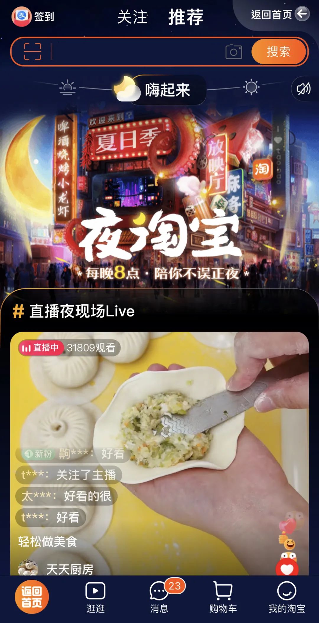 和常規(guī)版本相比,“夜淘寶”新版本更加強(qiáng)調(diào)生活娛樂,主打的是好看、好玩、好逛,把全國各地豐富的夜生活都搬進(jìn)淘寶,讓用戶可以沉浸式逛淘寶。