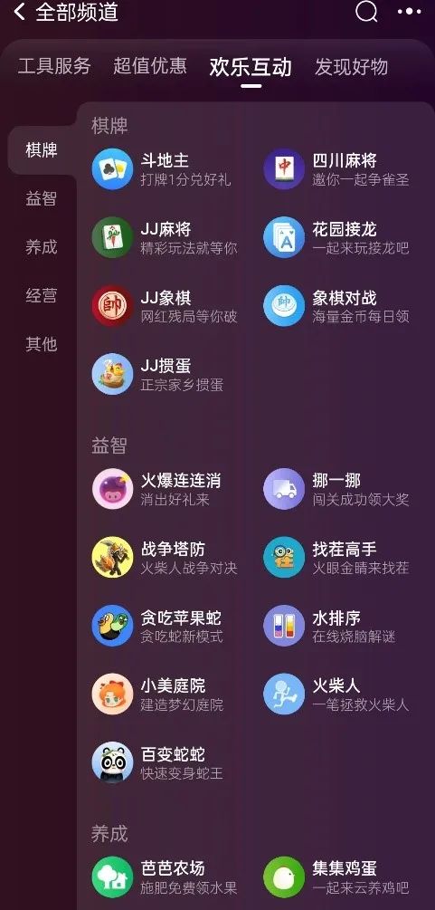 目前,淘寶已經(jīng)上線了將近30款小游戲,涵蓋了棋牌、經(jīng)營、益智、養(yǎng)成四大類別,常見的斗地主、麻將、消消樂等游戲都囊括其中。