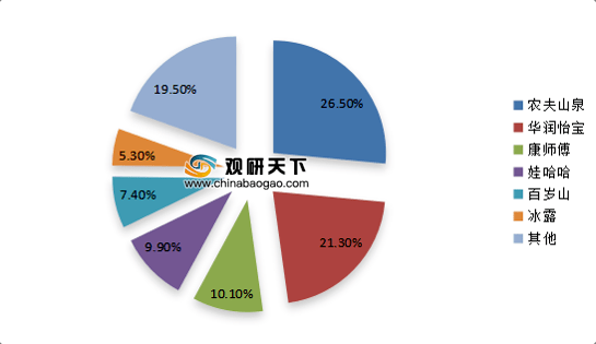 在我國的瓶裝水市場中,農(nóng)夫山泉長年穩(wěn)居第一,市場占有率達(dá)到26.5%;華潤怡寶則以21.3%的市占率位居第二。