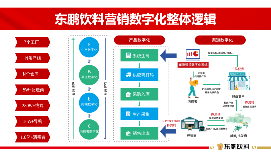 沒有數(shù)字化,就有非常多的弊端。深刻意識到這一點(diǎn),東鵬飲料從2015年開始,用了9年的時(shí)間,完成了數(shù)字化的兩個握手:即左手1.6億多不重復(fù)的消費(fèi)者,另一邊是300萬以上的終端小店。
