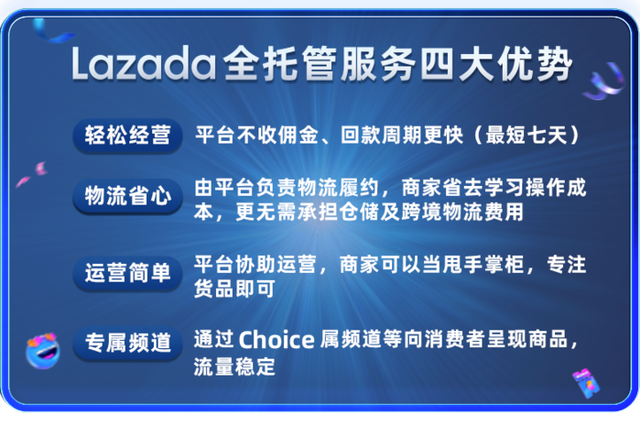 4月份,Lazada正式推出了全托管運(yùn)營(yíng)服務(wù)模式,全托管模式下,賣(mài)家只需供貨,剩下的運(yùn)營(yíng)、售后、物流等環(huán)節(jié)均由平臺(tái)負(fù)責(zé),并且Lazada還專(zhuān)門(mén)打造了全托管服務(wù)專(zhuān)屬購(gòu)物頻道“Choice”,為商家拓展更多曝光機(jī)會(huì)。