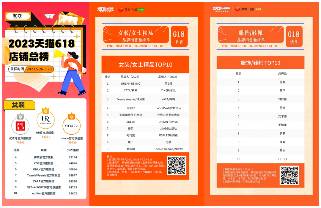 海外快時尚品牌們節(jié)節(jié)敗退的同時,國產(chǎn)品牌們迅速崛起。2018年,UR在內(nèi)地連開13家新店鋪;熱風(fēng)、太平鳥等傳統(tǒng)快時尚品牌迅速調(diào)整經(jīng)營策略,面向年輕一代的消費市場推出新品,迅速搶占市場。從今年618各大平臺的榜單數(shù)據(jù)也不難看出,國產(chǎn)快時尚品牌正在強勢占位。