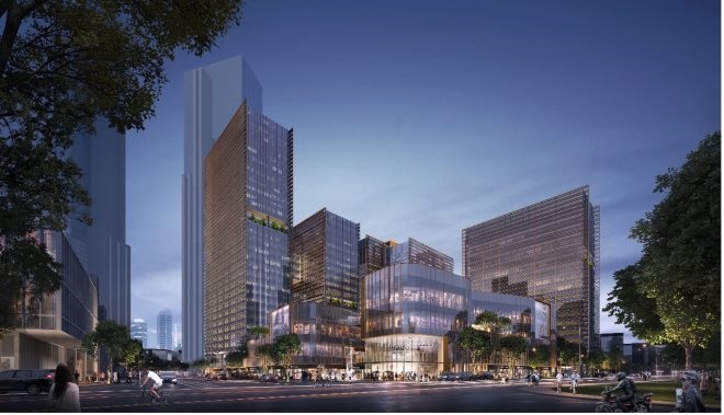 開(kāi)業(yè)后將是集四季酒店、購(gòu)物中心、雙塔可售不動(dòng)產(chǎn)為一體的市中心地標(biāo)型TOD城市綜合體。項(xiàng)目的設(shè)計(jì)概念源自于杭州的山水意型,在建筑的立面與室內(nèi)空間構(gòu)成上呈現(xiàn)古典中國(guó)畫(huà)的“寶石流霞” 、“亭臺(tái)樓閣”、“西湖水面”,創(chuàng)造詩(shī)意,并具有古典韻味的現(xiàn)代商業(yè)綜合體場(chǎng)所。中區(qū)則設(shè)有以人性尺度為核心的休閑飄臺(tái),同時(shí)以首層旗艦店空間打造全新地標(biāo),將休閑與生活方式零售融為一體。