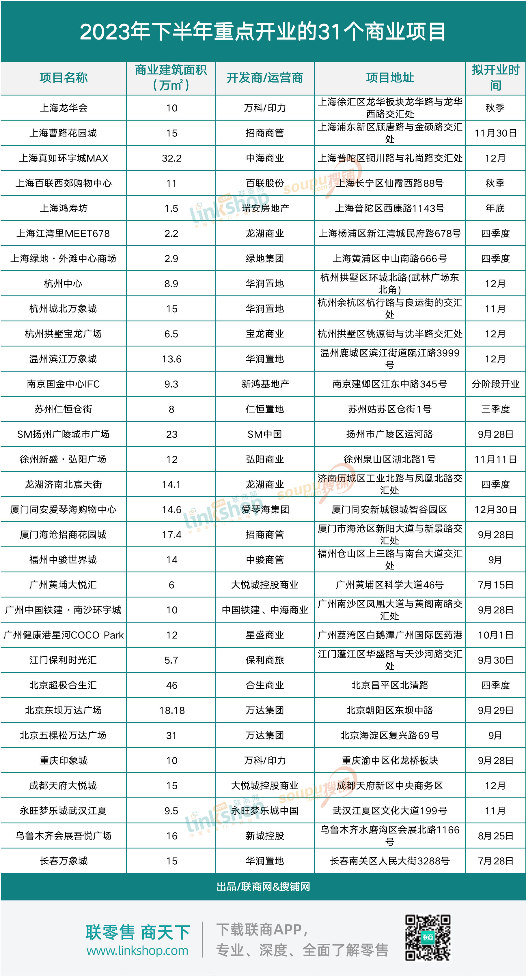 《聯(lián)商網(wǎng)》調(diào)研項(xiàng)目區(qū)位、業(yè)態(tài)組合、開(kāi)發(fā)及運(yùn)營(yíng)專(zhuān)業(yè)度、招商情況、品牌價(jià)值、城市戰(zhàn)略意義等維度,精選了下半年開(kāi)業(yè)計(jì)劃表中最值得期待的31個(gè)商業(yè)項(xiàng)目(非榜單)。