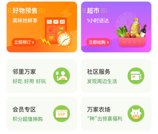 會員增長還得益于線上、社群經(jīng)營能力的提升。針對消費(fèi)者迭代需求,華潤萬家發(fā)力即時零售,自有線上購物平臺萬家APP和三方平臺(美團(tuán)、餓了么、京東)“線上下單、門店發(fā)貨、1小時送貨到家“,萬家APP“六大場景”:好物預(yù)售、網(wǎng)上超市、鄰里萬家、社區(qū)服務(wù)、萬家農(nóng)場、會員專區(qū),在為商圈內(nèi)消費(fèi)者提供一日三餐和居家生活最便捷服務(wù)的同時,還提供了多個場景的社交互動功能,提升會員停留時間和粘性。此外,華潤萬家5446個微信社群鎖定門店周邊2km商圈內(nèi)小區(qū)顧客,即時在線服務(wù)和互動,連接交流更加緊密,精準(zhǔn)服務(wù)會員顧客。
