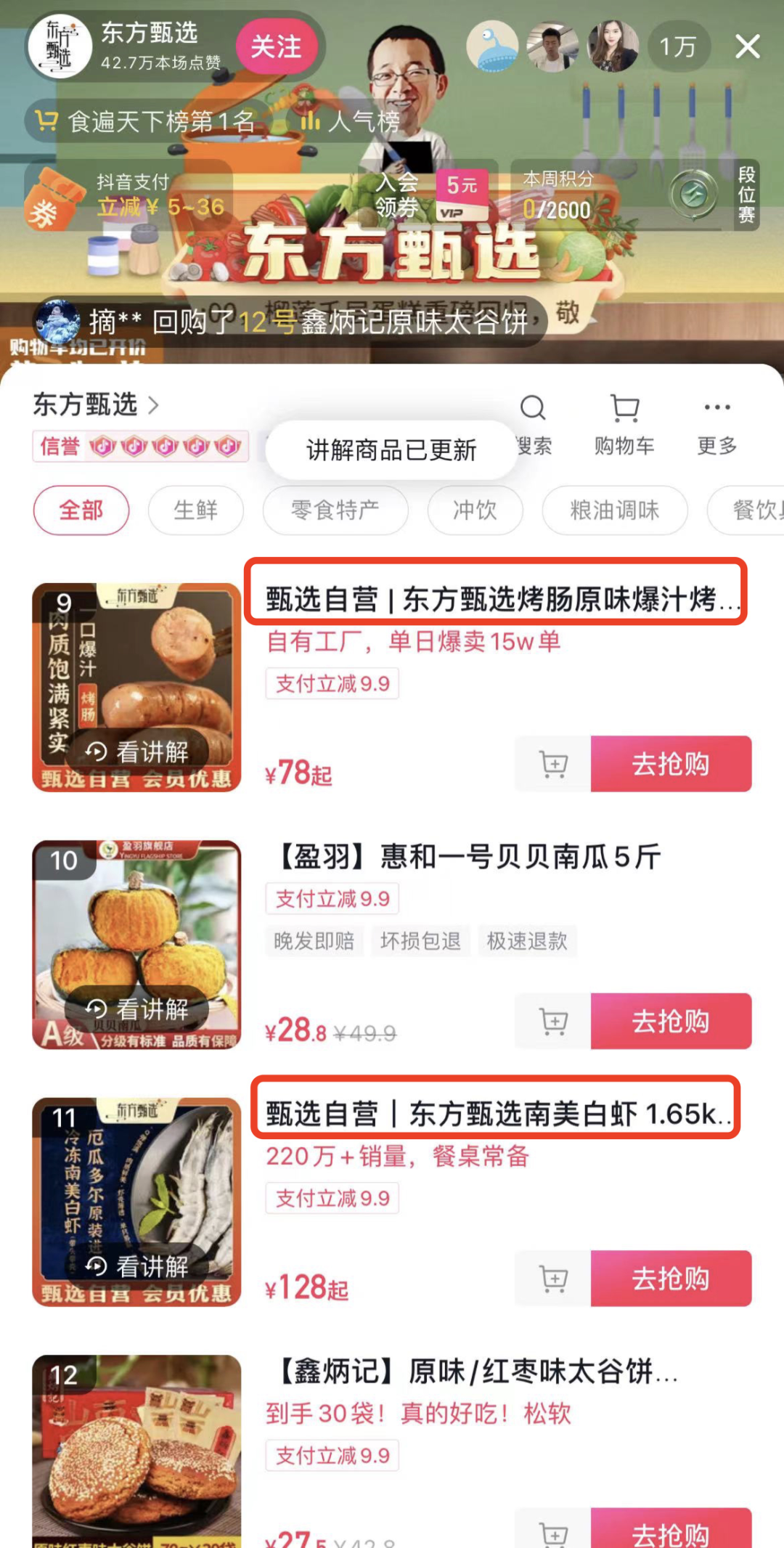 東方甄選自2022年6月在抖音出圈以后,基本保持日播頻率,以平價(jià)產(chǎn)品為主。這種強(qiáng)勢能也延續(xù)到了2023年。