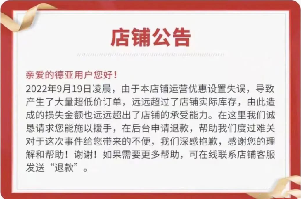 除了元氣森林,德亞天貓旗艦店也曾因為運營人員操作失誤,將原價112元/30盒的牛奶設(shè)置為了18.6元/30盒,引來大批用戶低價下單,一夜之間損失了700多萬元。