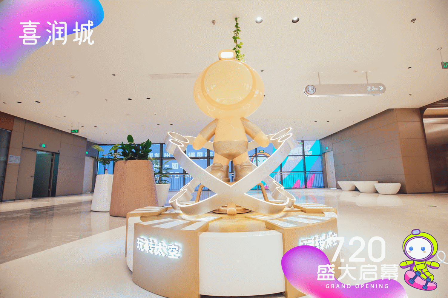 斥巨資打造城市級IP央小萌,以太空為主概念,顛覆傳統(tǒng),融合潮流玩趣于一體,通過“4大主題展陳、5大DP點”打造故事性購物體驗,共同構(gòu)成了喜潤城的特色場景,成為如東市民的拍照打卡新去處,喜潤城的成功開幕,不只是中央商場對商業(yè)綜合體的一次新嘗試,更是帶領(lǐng)城市商業(yè)的一次更迭與進化。
