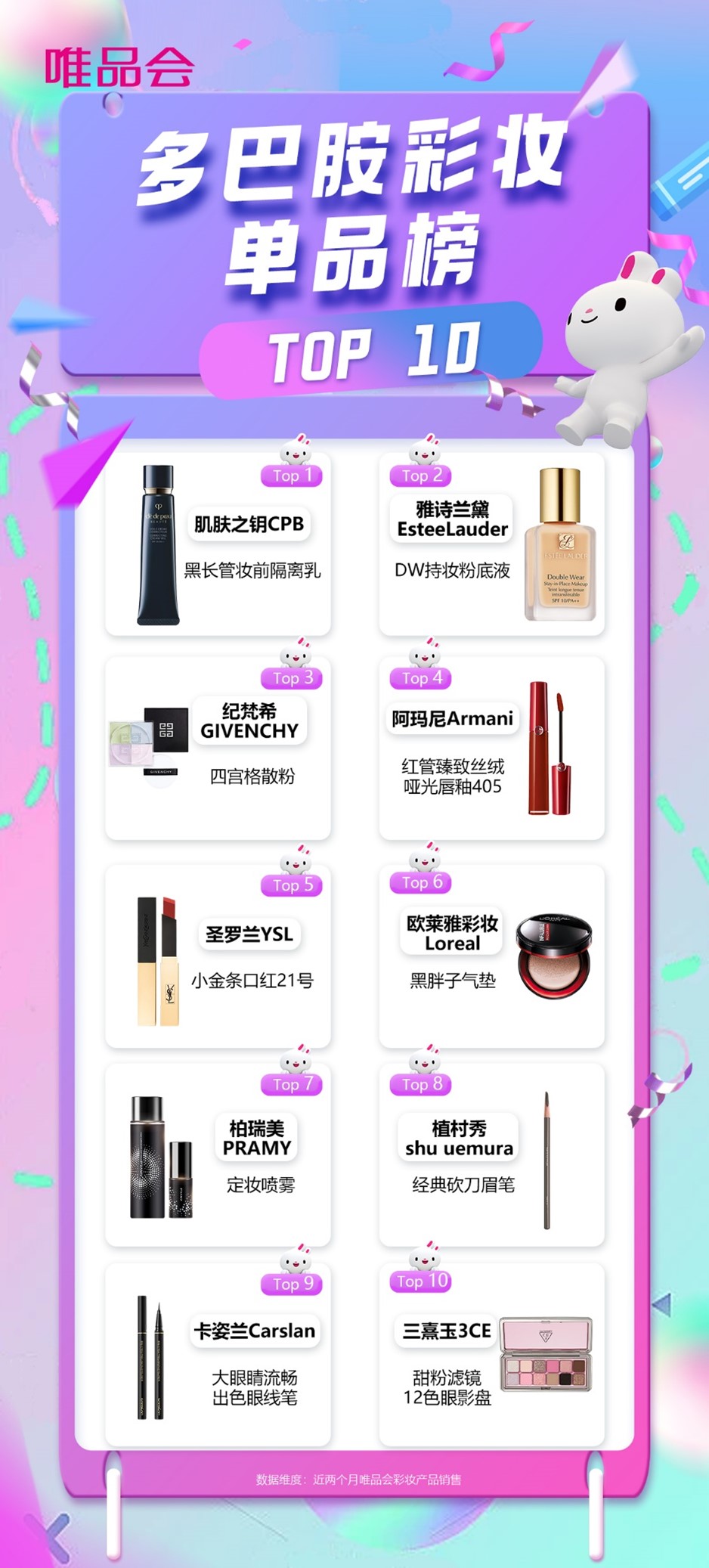 唯品會發(fā)布多巴胺彩妝榜單,多品類銷售額迎倍數(shù)增長