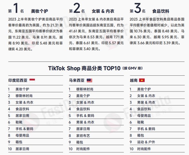 FastData《2023TikTok生態(tài)發(fā)展白皮書》顯示,東南亞TikTok上熱賣的商品多為美妝、日用品、服裝、輕電子等品類,且客單價基本在10美元以下。