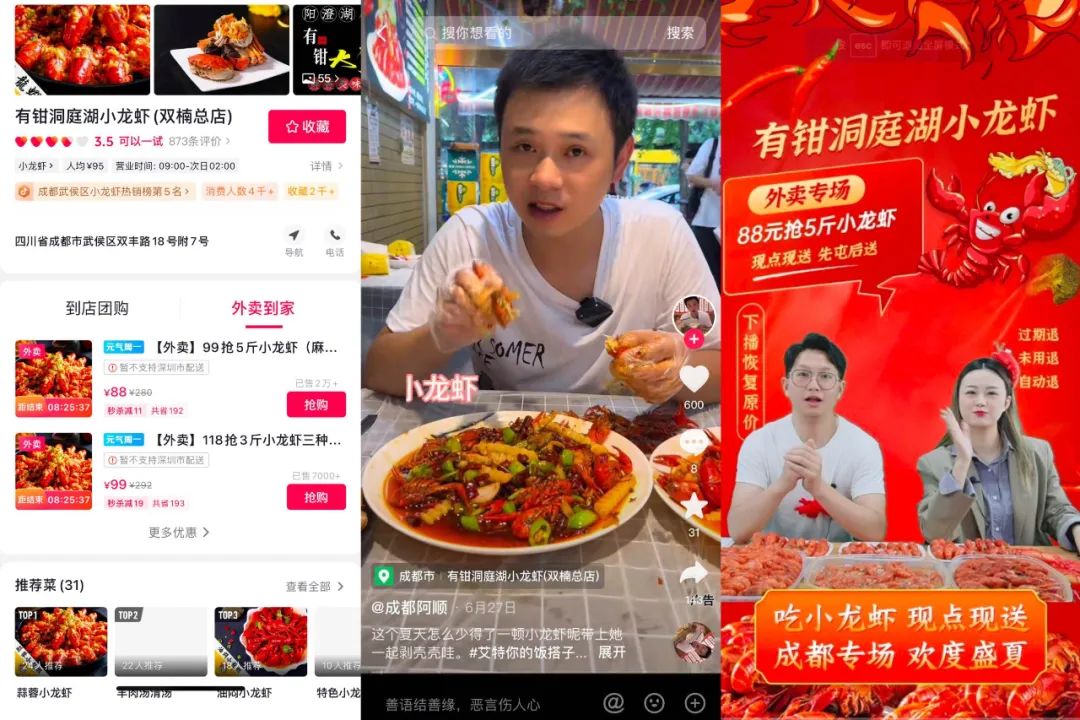 千千惠為有鉗洞庭湖小龍蝦打造的爆品套餐、達(dá)人探店視頻和直播