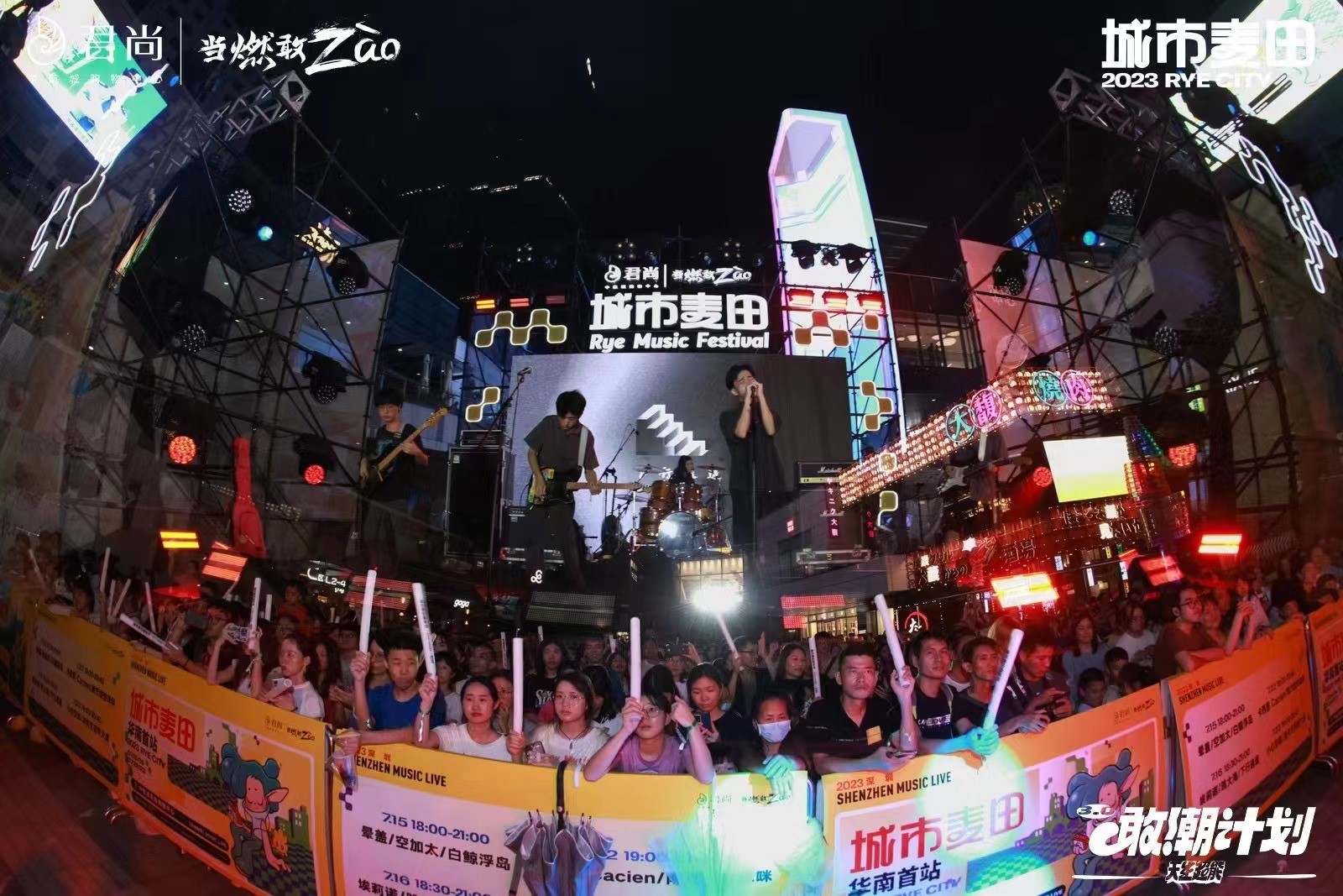 今年的“敢潮計(jì)劃3.0”將音樂節(jié)場景搬至深圳核心商圈,由太合音樂廠牌樂隊(duì)暈蓋、跳大海、埃莉諾等新銳音樂人熱情開麥,以創(chuàng)意音樂節(jié)玩法實(shí)現(xiàn)從購物中心到音樂圈的強(qiáng)勢跨界,不僅方便消費(fèi)者感受到最high的音樂節(jié)氛圍,更能享受集“吃喝玩樂購”多維一體的超級服務(wù)場景,加深了商業(yè)和年輕消費(fèi)者的情感鏈接。
