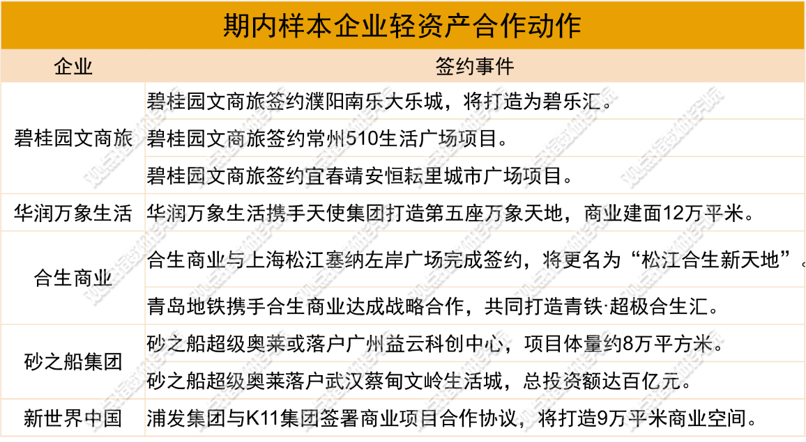 報(bào)告期內(nèi),樣本企業(yè)的輕資產(chǎn)業(yè)務(wù)發(fā)展依然活躍,以碧桂園文商旅和華潤萬象生活等企業(yè)最為積極。