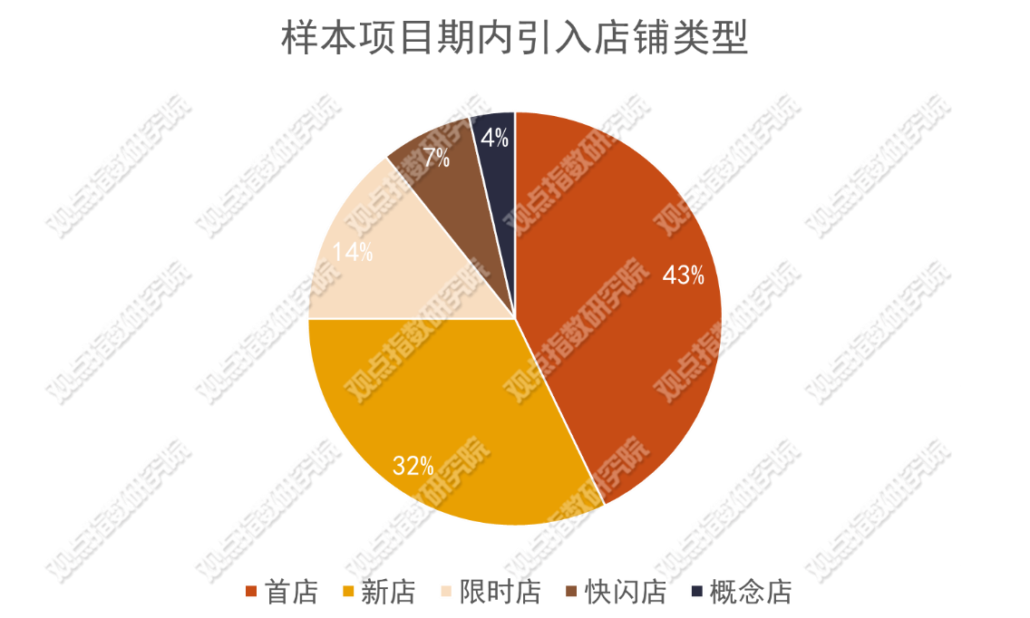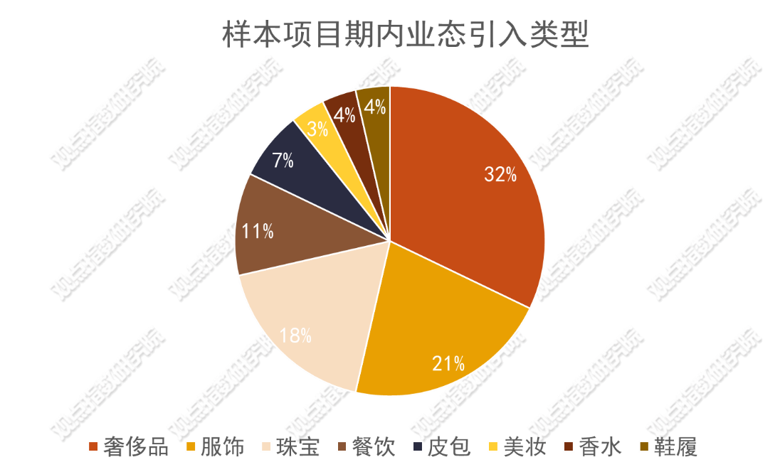 報(bào)告期內(nèi),觀點(diǎn)指數(shù)觀察下的樣本項(xiàng)目,在店鋪引入上主要涵蓋以奢侈品、服飾、珠寶等為代表的零售業(yè)態(tài),以咖啡、簡(jiǎn)餐為代表的餐飲業(yè)態(tài),相關(guān)的娛樂休閑類型店鋪較少。