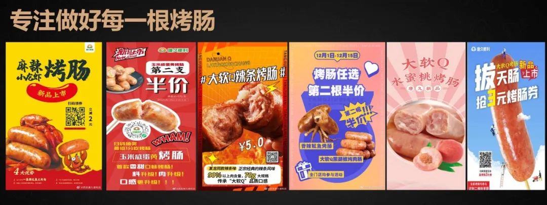 截至目前,唐久的大軟Q烤腸系列已經(jīng)形成了從口味,規(guī)格上豐富多樣的變化,受到更多的消費者喜愛。同時也為唐久每年帶來至少5—10%的同比增長效益。