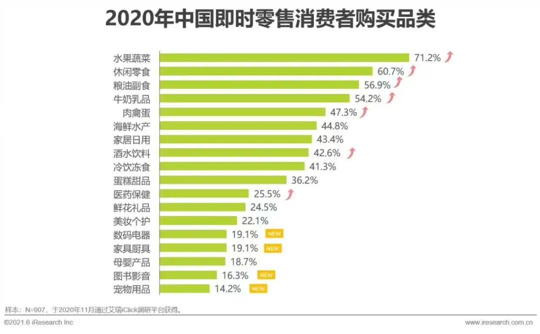 *生鮮處于即時零售品類的前幾名,圖源/艾瑞咨詢
