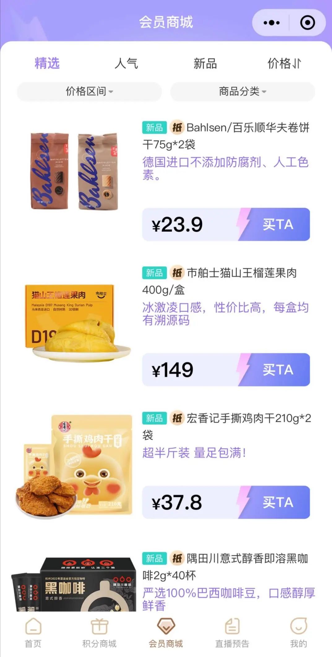 直播行業(yè)中,此前李佳琦曾經(jīng)試圖自建渠道,李佳琦曾在2022年3月推出了小程序“所有女生會員服務中心”,這被外界視作李佳琦出淘的重要嘗試。但隨著李佳琦一度停播,相關嘗試進一步轉向低調,在長達半年時間里,該小程序都不支持用戶直接購買商品,僅支持積分兌換。相比李佳琦等從小程序試水獨立,東方甄選的選擇更決絕。