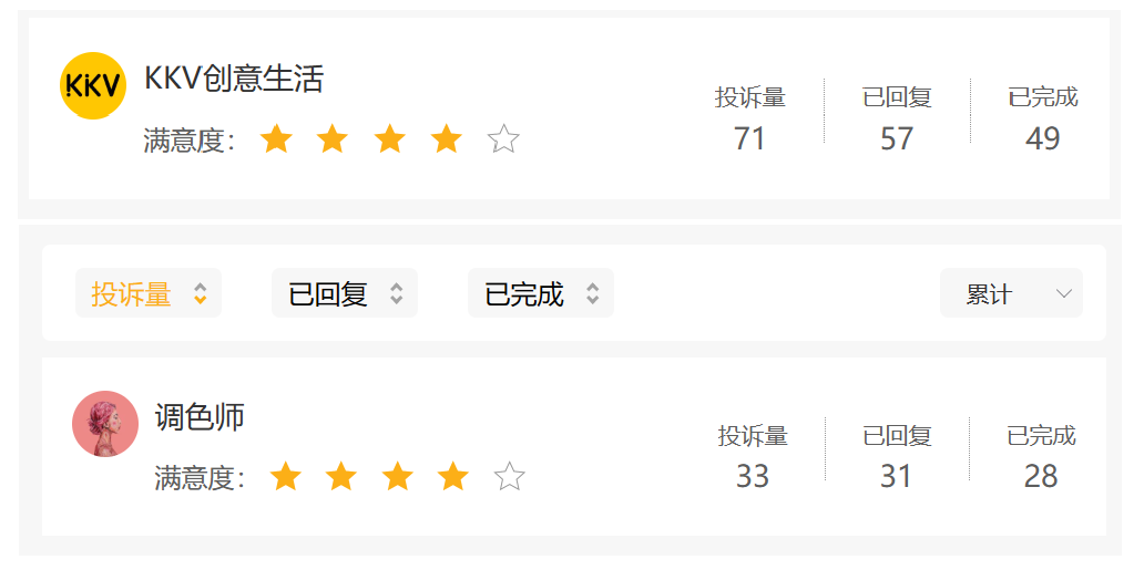 圖源/黑貓投訴上KKV、調(diào)色師累計(jì)投訴結(jié)果