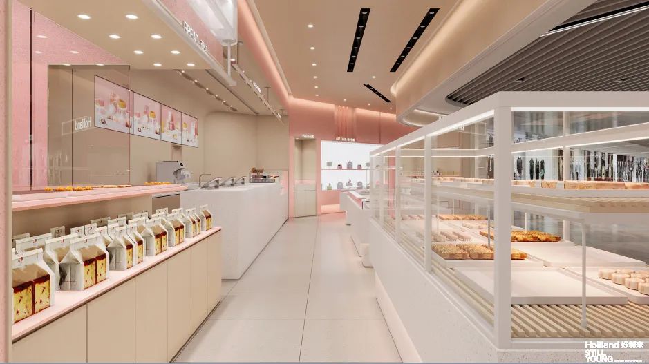 福州首店采用了夢幻的PINK主題,室內(nèi)幾何圖形與整個空間融為一體,配合特別設(shè)計的燈光,無限延伸甜蜜體驗,仿佛誤入一個繽紛多彩的甜品王國。