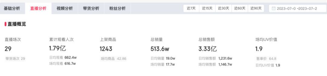 據(jù)達(dá)多多數(shù)據(jù),在整個(gè)7月份,東方甄選主號(hào)進(jìn)行了29場直播,總GMV為3.33億。