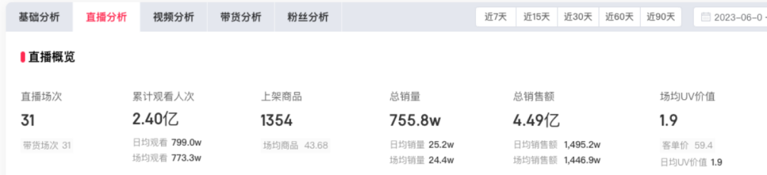 就在6月份,東方甄選主號(hào)進(jìn)行了31場直播,總GMV為4.49億。