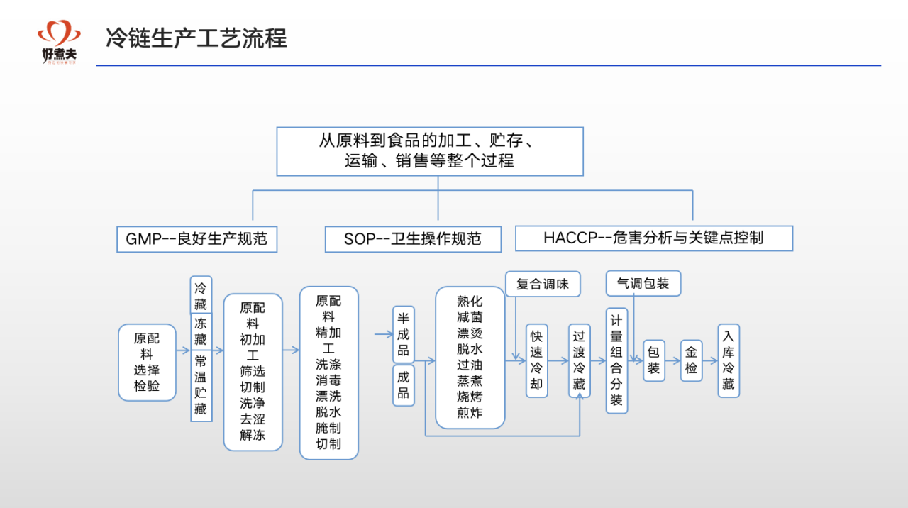 你能不能在不同的場景下做出滿足不同需求的C端產(chǎn)品來。從B端的需求出發(fā),預(yù)制菜怎么去給我們的客戶節(jié)約成本,大概包括人工、時(shí)間、空間、消耗。人工包括管理人員、廚師、廚工,時(shí)間減少我們終端現(xiàn)場的操作時(shí)間,延長后邊工廠加工的時(shí)間,省空間包括節(jié)省現(xiàn)場的操作空間,就是你的廚房、你的門店廚房和前廳的占比要越來越小,小廚房、大前廳。充分利用央廚的空間,省消耗包括本身產(chǎn)品的損耗、運(yùn)營的消耗和過程中的損耗。標(biāo)準(zhǔn)化的技術(shù)、冷鏈技術(shù)、供應(yīng)鏈的管理、精益管理,大家會發(fā)現(xiàn)不同的技術(shù)在給你省不同的成本。