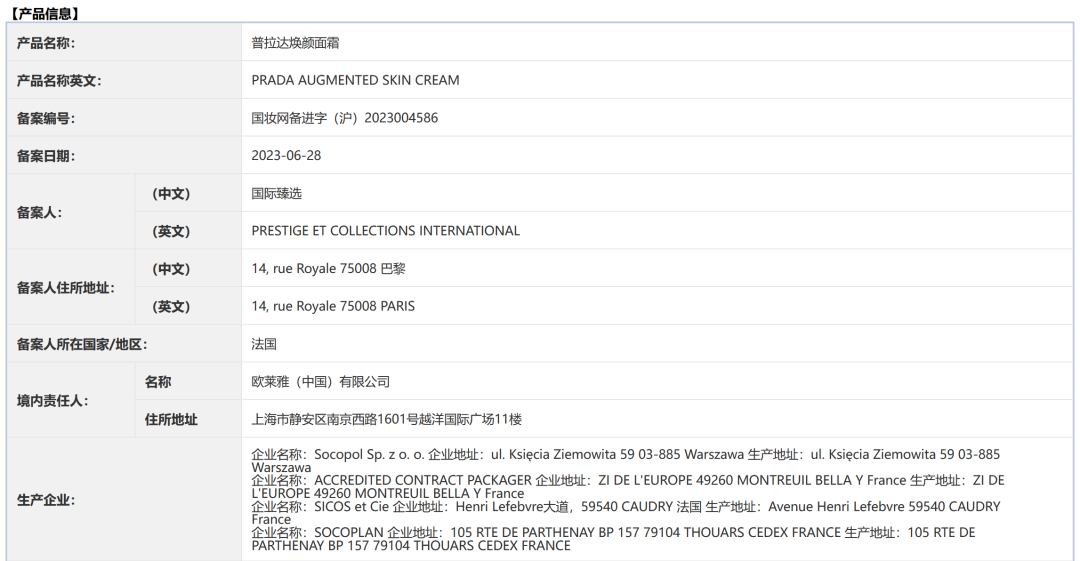 青眼號外也注意到,Prada彩妝與護膚產品均已備案,進入中國市場也不遠了。