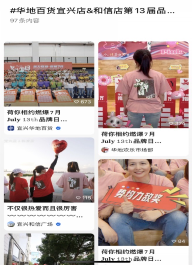 炎炎夏日,閑來荷事,夏天的頂流荷花驚現(xiàn)宜興華地百貨&宜興和信廣場!昂苫▽m樣美人妝,荷葉臨風翠做裳”!夏荷正當時,著我漢家衣裳,以荷之名,赴一場“荷你有約”。這次兩店品牌日以“荷花”作為切入點,設計并展現(xiàn)了巨型荷花美陳打卡點。一朵荷花,綻放了整個夏天。商場導購也結合夏日新裝與荷花美景拍照發(fā)至小紅書/朋友圈,很好的宣傳了品牌新品。同時,商場在小紅書上發(fā)起了曬荷花打卡照贏咖啡券的話題活動,吸引了N多年輕人參與打卡。
