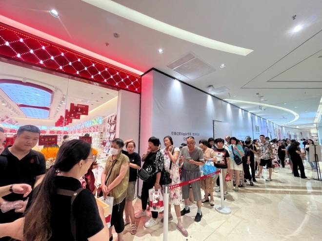 7月15日,「薛記炒貨」丹陽首店盛大開業(yè),現(xiàn)場人氣如潮,大量消費(fèi)者排起長隊(duì),只為體驗(yàn)味蕾綻放。