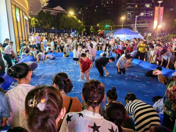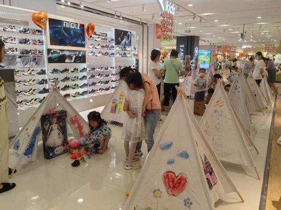 年中慶檔期,外廣場開展為期兩天的文藝匯演活動,從金壇木蘭協(xié)會、萬科幼兒園、優(yōu)容藝術(shù)園到花蕾舞蹈,從80歲的阿姨到5歲的小朋友,在舞臺上表演的樣子,都是閃閃發(fā)著光芒。文藝匯演現(xiàn)場座無虛席,反響熱烈,觀眾掌聲不斷;在廣場的另一端是第四屆的捕魚達人大賽,今年除了鯽魚還加入了滑溜溜的泥鰍,現(xiàn)場的顧客各個躍躍欲試,泳池內(nèi)外都充斥著歡聲笑語,還有會員感嘆已經(jīng)連續(xù)幾年參加捕魚活動,明年還要再來;位于一樓東大門的夏日小食點,會員支付0.1元,即可品嘗到美味的涼皮、冰栗子、紅豆棒冰,每天的夏日小食點位都是大排長龍,熱鬧非凡。年中慶預(yù)熱階段開展了手繪帳篷DIY活動,在第二個周末,也就是7月16日,邀請小朋友們再次到店,參與“小小攤主”活動,在這樣的童樂匯活動中,參與其中的每一位小朋友,都在“我是攤主”的角色轉(zhuǎn)換里體會到了賺錢的不易,更加感恩父母無私的奉獻與陪伴。