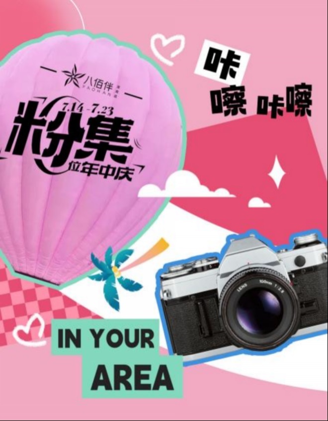 位于淮南八佰伴東門(mén)外廣場(chǎng)處,一個(gè)巨型粉色熱氣球屹立于此,引得無(wú)數(shù)來(lái)往顧客駐足打卡。其上印著的“C位粉集”logo極為顯眼,這也是本次淮南八佰伴年中慶的主題。意味著“八佰伴此次粉色的市集,是全淮南商業(yè)版圖的C位”。