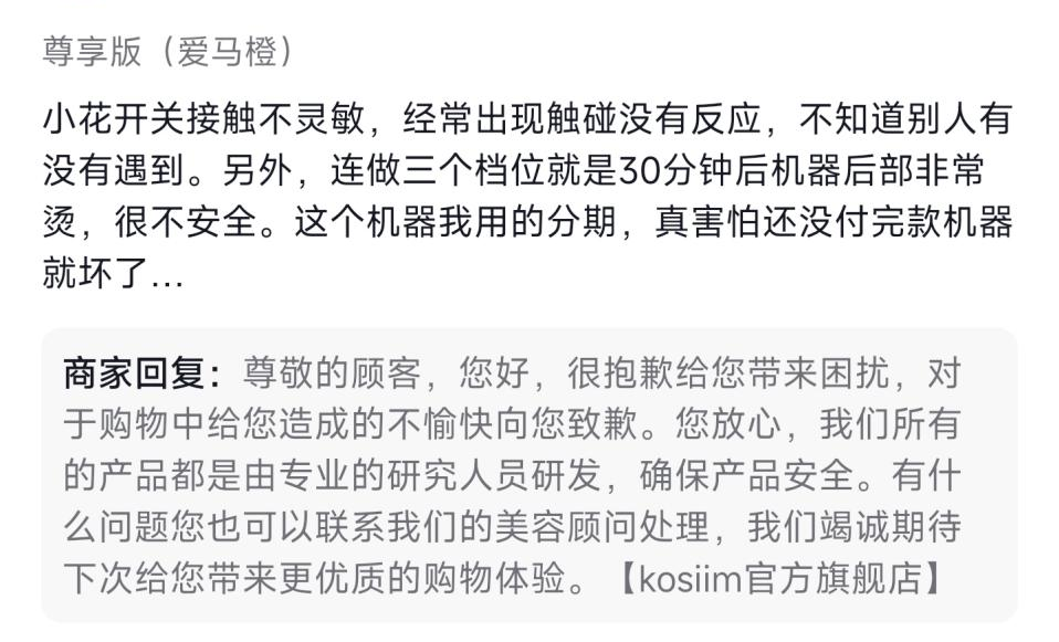 首先是產(chǎn)品質(zhì)量。壹覽商業(yè)以美容儀為關(guān)鍵詞在黑貓投訴進(jìn)行搜索,僅30天內(nèi)便有2382條與美容儀相關(guān)。就連老牌美容儀品牌初普也曾因美容儀質(zhì)量問題緊急召回8萬余臺美容儀。