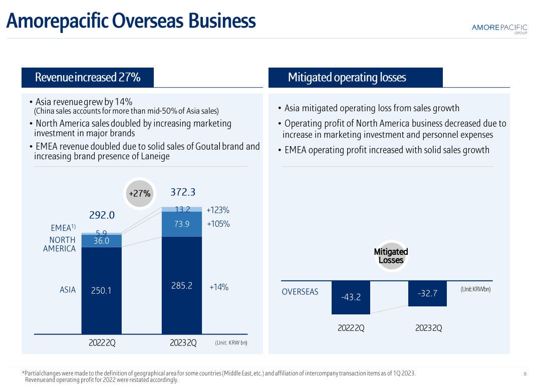 這種通過(guò)提升品牌體驗(yàn)、推新品以及優(yōu)化產(chǎn)品組合的方式,讓愛(ài)茉莉太平洋旗下品牌在中國(guó)市場(chǎng)提升了盈利能力。財(cái)報(bào)中提到,在亞洲的營(yíng)業(yè)活動(dòng)減少了銷售增長(zhǎng)帶來(lái)的營(yíng)業(yè)損失。