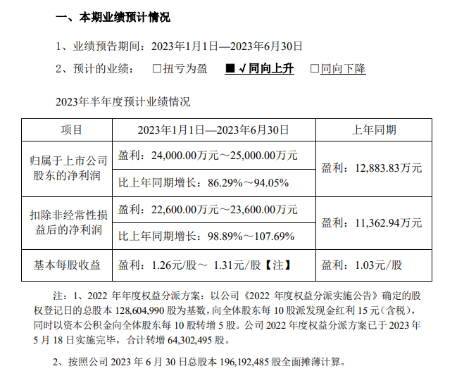 近日,鹽津鋪?zhàn)优读?023年半年度的業(yè)績盈利預(yù)告。