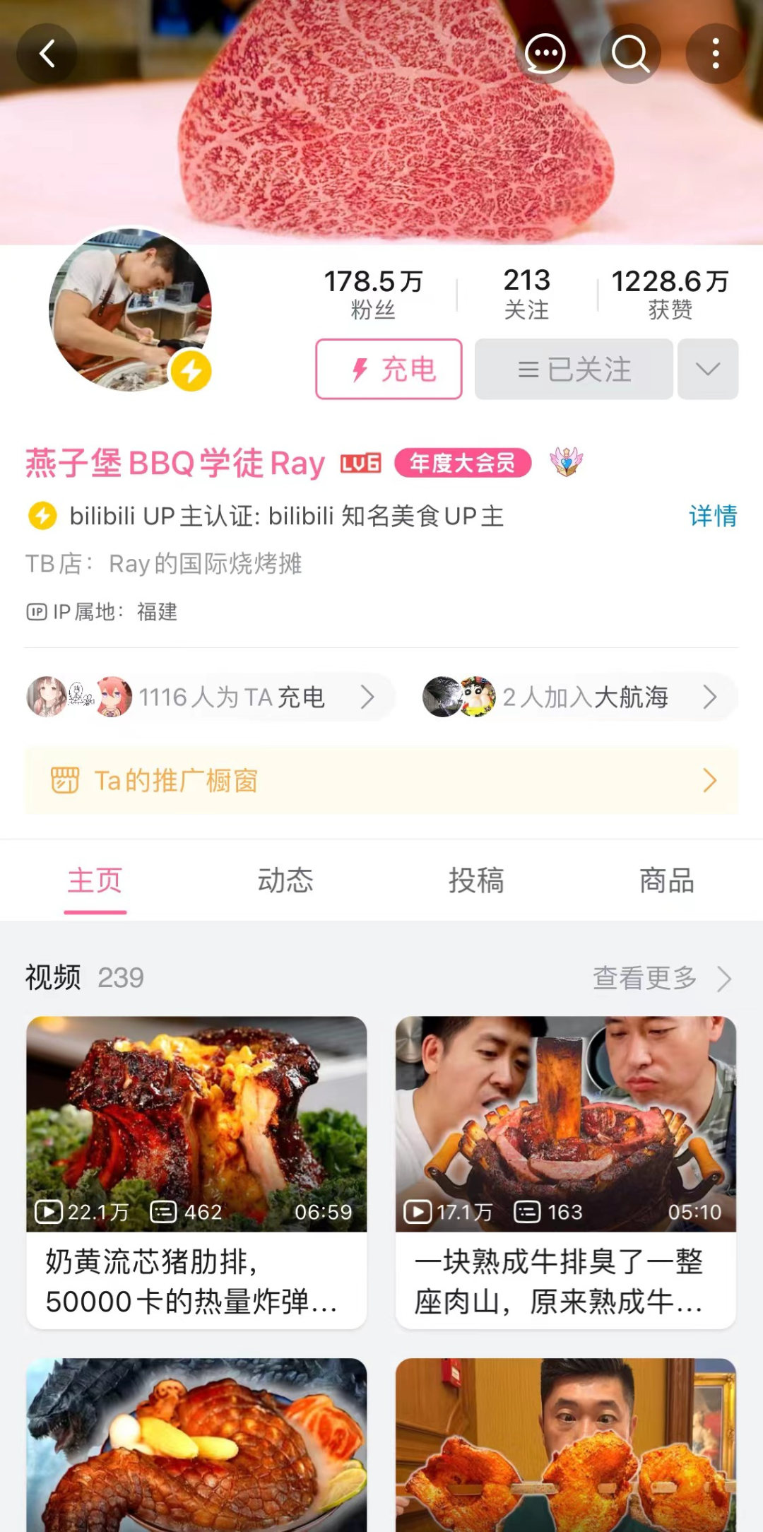 更早的時候,今年3月,178萬粉絲的美食制作UP主@燕子堡BBQ學(xué)徒Ray 開始B站帶貨,目前一周一次,一次4小時,平均一場直播GMV有14-18萬。