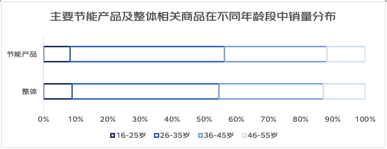 從年齡分布來看,26-45歲人群依然是主力,他們的需求更長期、更穩(wěn)定,因此對品質(zhì)和環(huán)保要求更高;而25歲以下人群對節(jié)能產(chǎn)品的敏感性不高,原因一方面在于他們大部可能尚未成家、買房,對冰箱空調(diào)等大件商品的購買需求不如年長人群旺盛。