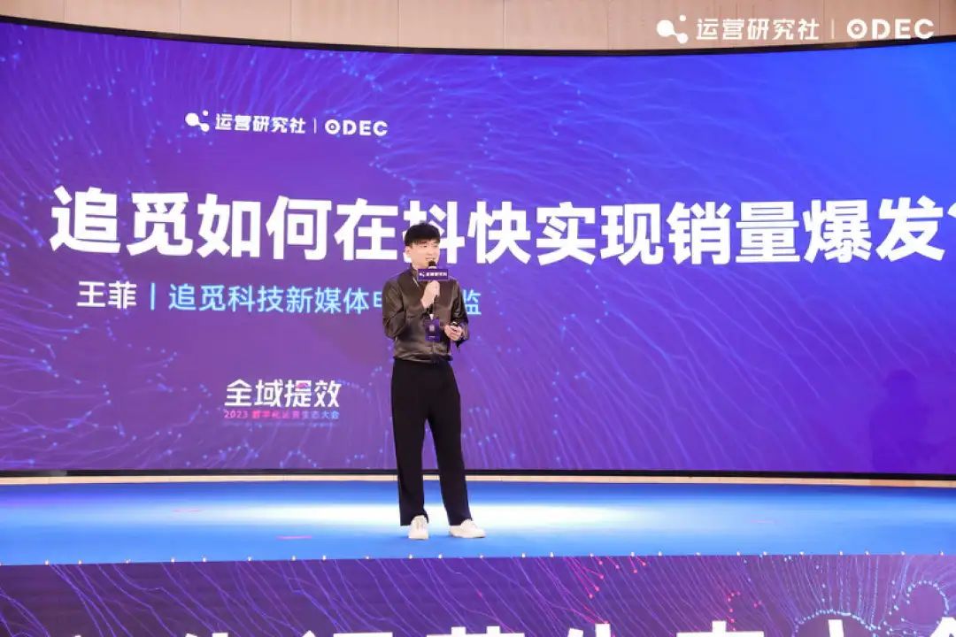 追覓科技新媒體電商總監(jiān)王菲以追覓在抖音的經(jīng)營為核心案例,分享了主題演講《從種草到轉(zhuǎn)化,追覓如何在抖快實現(xiàn)爆發(fā)》。