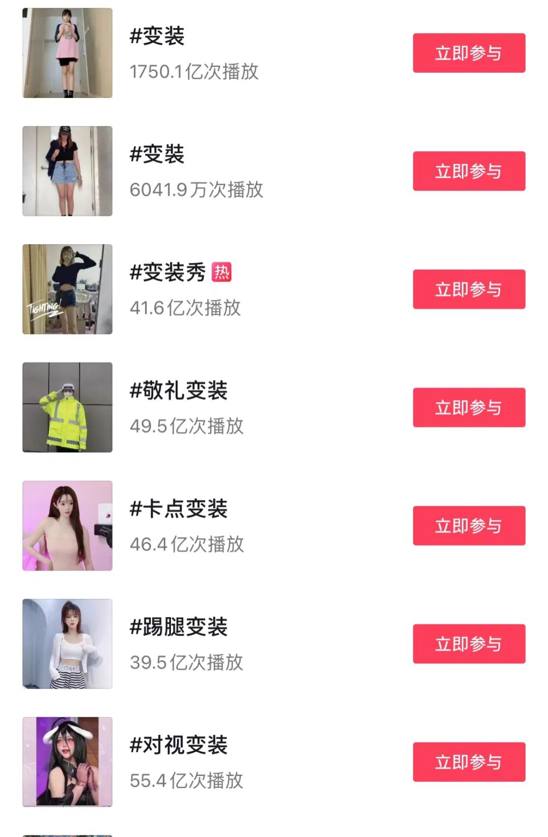 據(jù)抖音官方數(shù)據(jù)顯示,僅變裝這一話題下,就有1749億次播放量,而僅僅在15個月前,該話題的播放量才剛剛超過1000億次。按照8.09億抖音用戶來計算,每一位抖音用戶都觀看了216次變裝視頻,用戶對變裝的喜好可想而知。