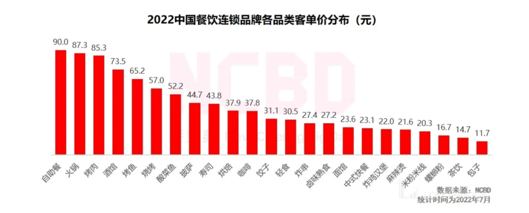 上圖:NCBD(餐寶點(diǎn))統(tǒng)計(jì)的各餐飲品類客單價(jià)分布;下圖:“長(zhǎng)橋海豚”統(tǒng)計(jì)的海底撈歷年客單價(jià)
